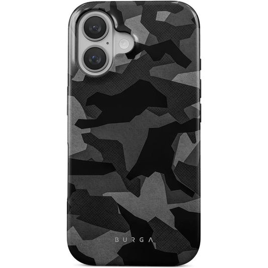 Protège ton Apple iPhone 16 des dommages avec la coque arrière Burga Tough fabriquée en plastique rigide robuste. La coque est de couleur night black camo et coque l'arrière et le côté de ton téléphone. L'avant reste libre avec cette coque arrière, ton écran est donc toujours directement accessible.