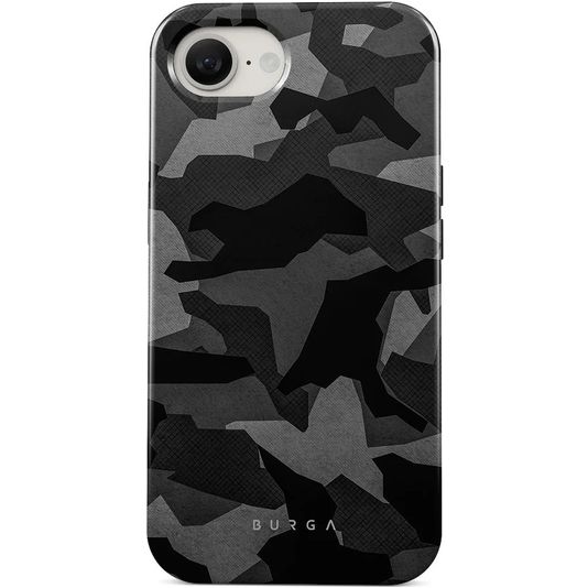Burga Tough Coque iPhone 16e Coque arrière Rigide Anti-Chocs - Night Black Camo