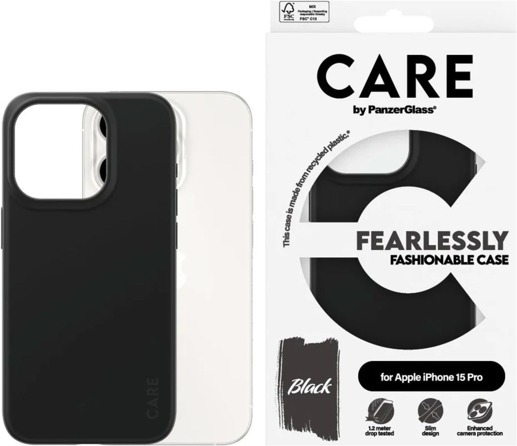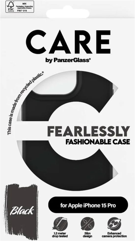 CARE by PanzerGlass Fashionable Coque iPhone 15 Pro Coque arrière en Silicone - Noir