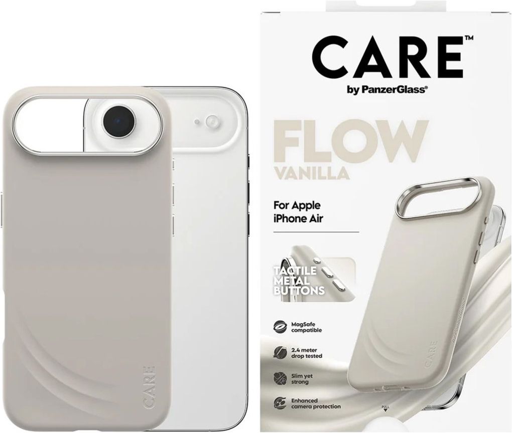 CARE by PanzerGlass Feature FLOW Coque iPhone Air MagSafe Coque arrière en Silicone Anti-Chocs - Vanilla