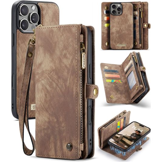 Caseme 008 Housse iPhone 16 Pro Max Etui avec Coque Détachable Porte-Monnaie - Marron