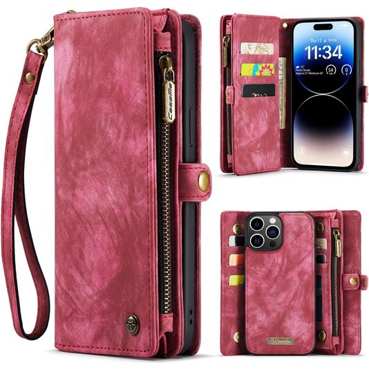 Caseme 008 Housse iPhone 15 Pro Max Etui avec Coque Détachable Porte-Monnaie - Rouge