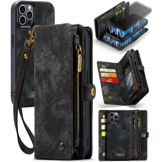 Caseme 008 Housse iPhone 12 Etui avec Coque Détachable Porte-Monnaie - Noir