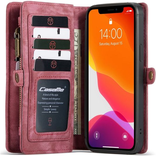 Caseme 008 Housse iPhone 12 Etui avec Coque Détachable Porte-Monnaie - Rouge