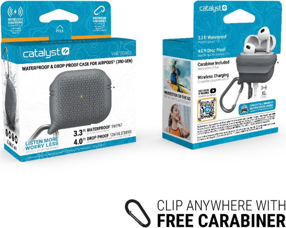 Toutes les fonctions et tous les boutons de votre Apple AirPods 3 restent entièrement accessibles. De plus, après avoir installé l'étui Catalyst Vibe, vous pouvez toujours charger votre Apple AirPods 3 comme d'habitude.