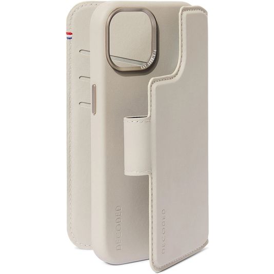 Decoded Detachable Wallet Housse iPhone 15 MagSafe Etui avec Coque Détachable en Cuir Véritable Porte-Monnaie - Clay