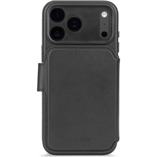 Decoded Detachable Wallet Housse iPhone 17 Pro MagSafe Etui avec Coque Détachable en Cuir Véritable Porte-Monnaie - Noir