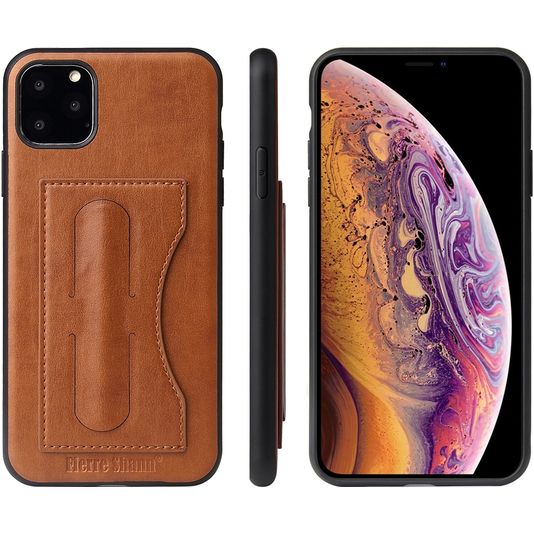Fierre Shann Card Pocket Coque iPhone 11 Pro Coque arrière avec Porte-Cartes et Support Amovible - Cognac