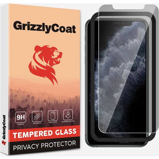 GrizzlyCoat Easy Fit AntiSpy iPhone 11 Pro Max Verre trempé Protection d'écran Confidentialité - Compatible Coque + Cadre d'installation