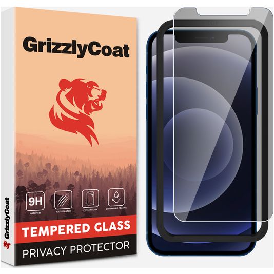 GrizzlyCoat Easy Fit AntiSpy iPhone 12 Pro Max Verre trempé Protection d'écran Confidentialité - Compatible Coque + Cadre d'installation