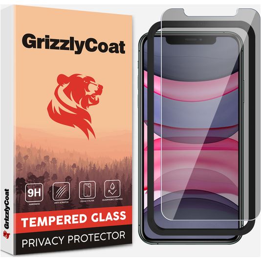 GrizzlyCoat Easy Fit AntiSpy iPhone XR Verre trempé Protection d'écran Confidentialité - Compatible Coque + Cadre d'installation