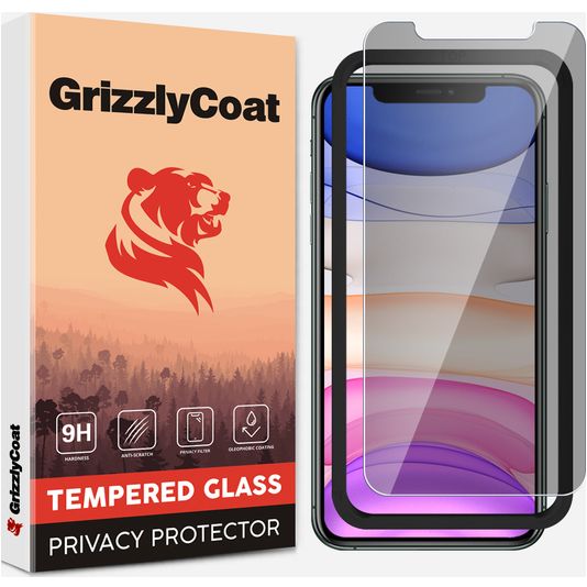 GrizzlyCoat Easy Fit AntiSpy iPhone XS Verre trempé Protection d'écran Confidentialité - Compatible Coque + Cadre d'installation
