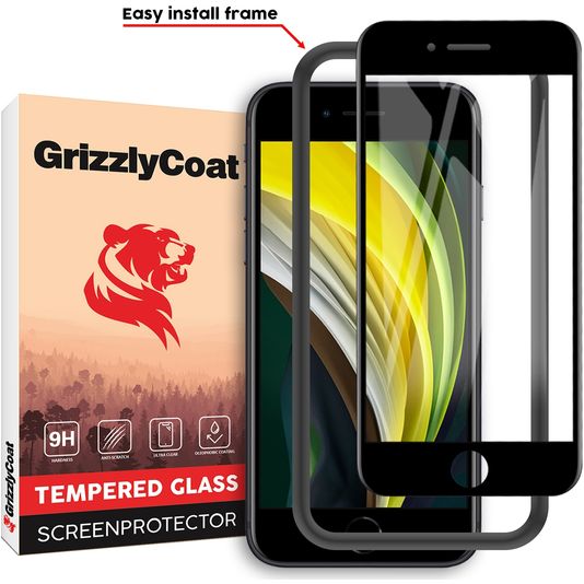GrizzlyCoat Easy Fit iPhone 6s Verre trempé Protection d'écran - Compatible Coque + Cadre d'installation - Noir