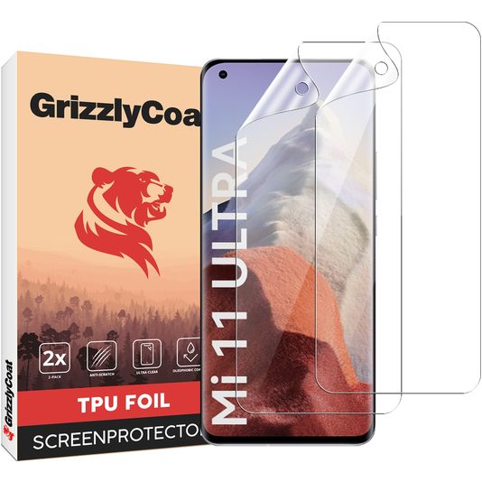 GrizzlyCoat Xiaomi Mi 11 Ultra Hydrogel TPU Protection d'écran - Compatible Coque + Cadre d'installation (Lot de 2)