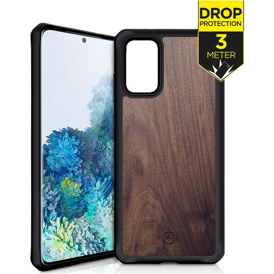 ITSkins HybridFusion Coque Samsung Galaxy S20 Plus Coque arrière Rigide Anti-Chocs - Dark Wood