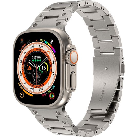Mobigear Amsterdam Bracelet Acier Apple Watch Fermeture boucle déployante - 42/41/40/38 mm - Titane