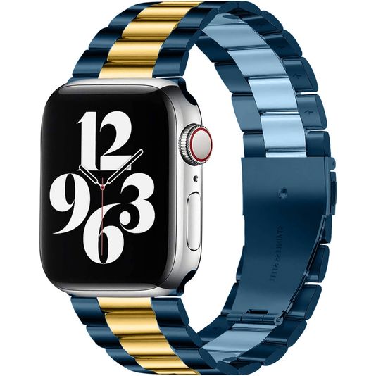 Mobigear Antwerp Bracelet Acier Apple Watch Fermeture boucle déployante - 42/41/40/38 mm - Bleu / Or