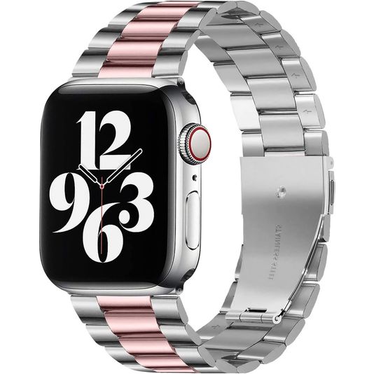 Mobigear Antwerp Bracelet Acier Apple Watch Fermeture boucle déployante - 49/46/45/44 mm - Rose / Argent