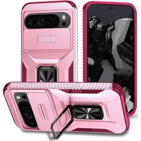 Mobigear Armor Ring Cam Slide Coque Google Pixel 9 Pro XL Coque arrière Rigide Anti-Chocs avec Anneau-Support et Protecteur Lentilles - Rose