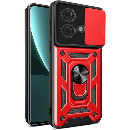 Mobigear Armor Ring Cam Slide Coque Motorola Edge 40 Neo Coque arrière Rigide Anti-Chocs avec Anneau-Support et Protecteur Lentilles - Rouge