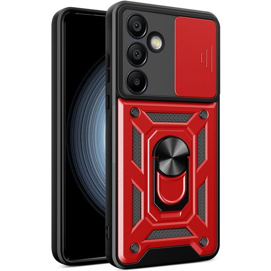 Mobigear Armor Ring Cam Slide Coque Samsung Galaxy S24 FE Coque arrière Rigide Anti-Chocs avec Anneau-Support et Protecteur Lentilles - Rouge