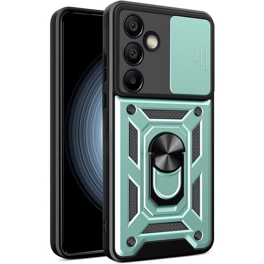 Mobigear Armor Ring Cam Slide Coque Samsung Galaxy S24 FE Coque arrière Rigide Anti-Chocs avec Anneau-Support et Protecteur Lentilles - Vert
