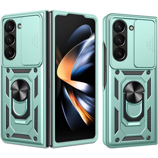 Mobigear Armor Ring Cam Slide Coque Samsung Galaxy Z Fold 7 Coque arrière Rigide Anti-Chocs avec Anneau-Support et Protecteur Lentilles - Vert