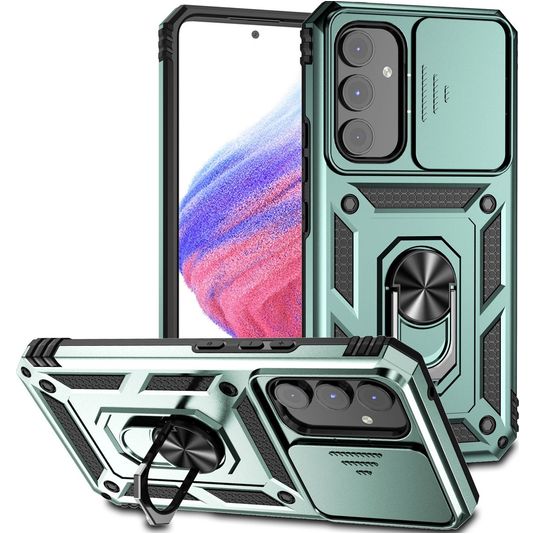 Mobigear Armor Ring Cam Slide Coque Samsung Galaxy A54 Coque arrière Rigide Anti-Chocs avec Anneau-Support et Protecteur Lentilles - Vert