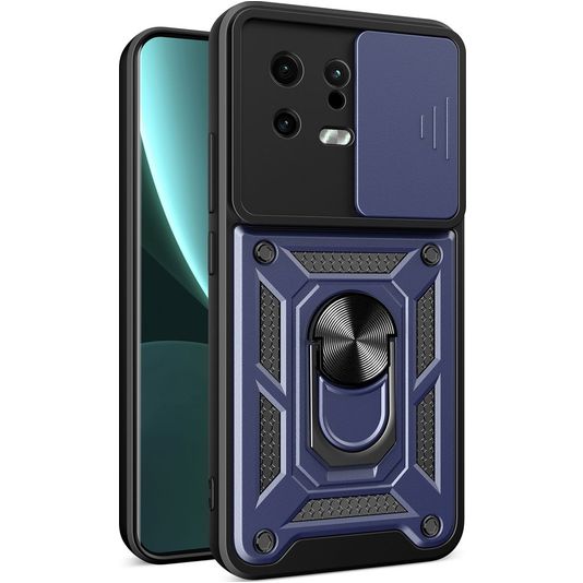 Mobigear Armor Ring Cam Slide Coque Xiaomi 13 Coque arrière Rigide Anti-Chocs avec Anneau-Support et Protecteur Lentilles - Bleu