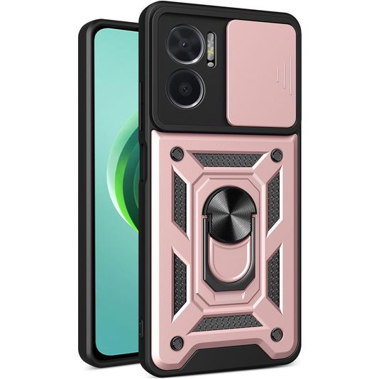 Mobigear Armor Ring Cam Slide Coque Xiaomi Redmi 10 5G Coque arrière Rigide Anti-Chocs avec Anneau-Support et Protecteur Lentilles - Rose doré