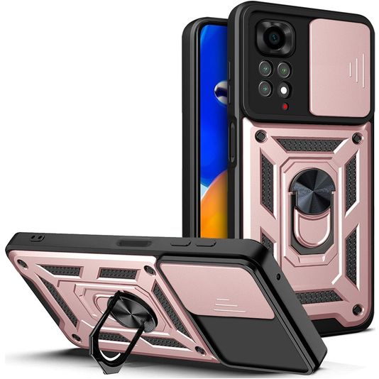 Mobigear Armor Ring Cam Slide Coque Xiaomi Redmi Note 11 4G Coque arrière Rigide Anti-Chocs avec Anneau-Support et Protecteur Lentilles - Rose doré