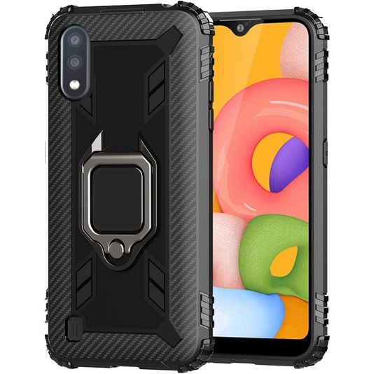 Mobigear Armor Ring Coque Samsung Galaxy A01 Coque arrière en TPU Souple Anti-Chocs avec Anneau-Support - Noir