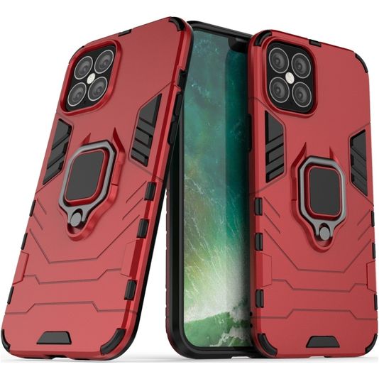Mobigear Armor Ring Coque iPhone 12 Pro Max Coque arrière Rigide Anti-Chocs avec Anneau-Support - Rouge