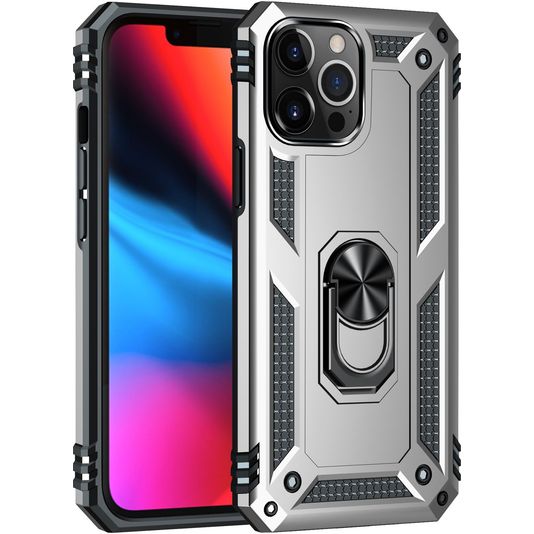 Mobigear Armor Ring Coque iPhone 13 Pro Max Coque arrière Rigide Anti-Chocs avec Anneau-Support - Argent