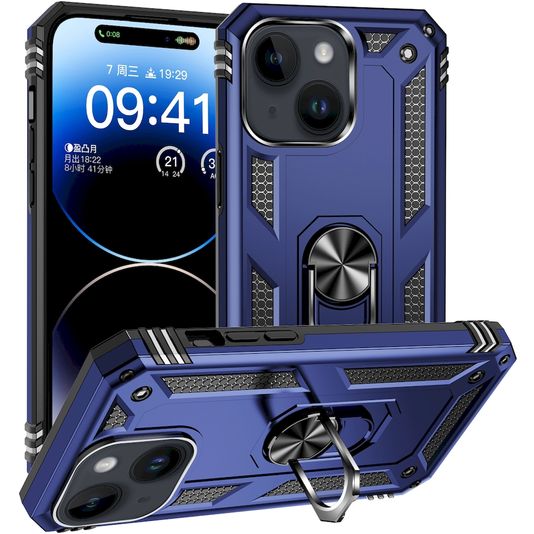 Mobigear Armor Ring Coque iPhone 15 Coque arrière Rigide Anti-Chocs avec Anneau-Support - Bleu