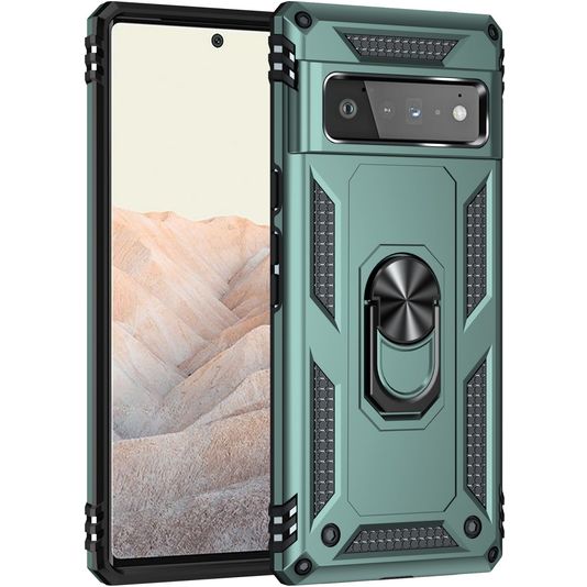 Mobigear Armor Ring Coque Google Pixel 6 Pro Coque arrière Rigide Anti-Chocs avec Anneau-Support - Vert