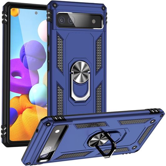 Mobigear Armor Ring Coque Google Pixel 6a Coque arrière Rigide Anti-Chocs avec Anneau-Support - Bleu