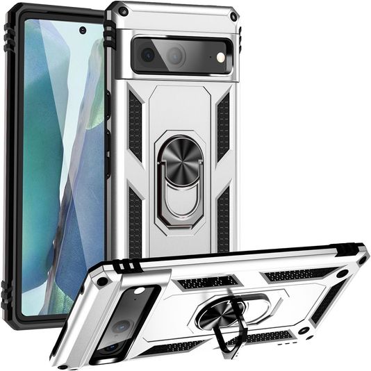 Mobigear Armor Ring Coque Google Pixel 7 Coque arrière Rigide Anti-Chocs avec Anneau-Support - Argent