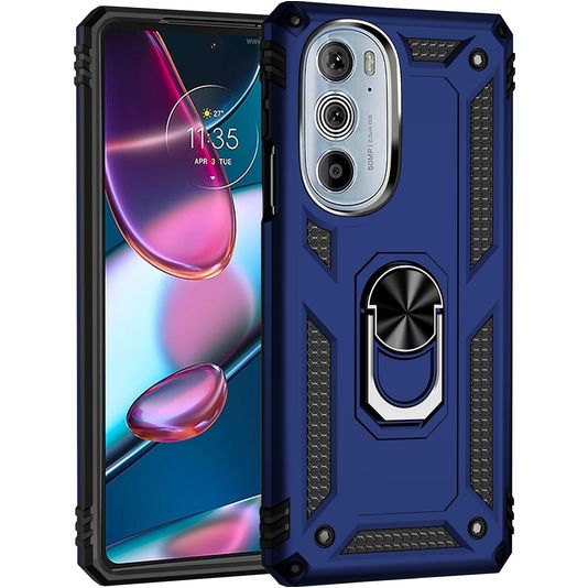 Mobigear Armor Ring Coque Motorola Edge 30 Pro Coque arrière Rigide Anti-Chocs avec Anneau-Support - Bleu