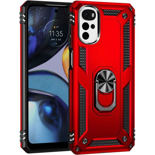 Mobigear Armor Ring Coque Motorola Moto G22 Coque arrière Rigide Anti-Chocs avec Anneau-Support - Rouge