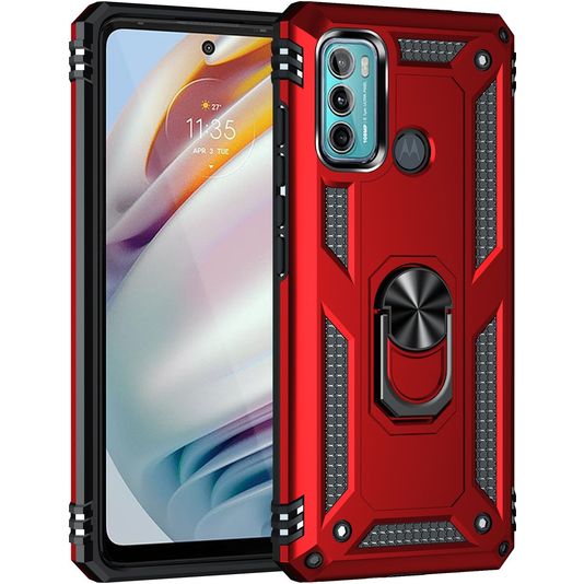 Mobigear Armor Ring Coque Motorola Moto G60 Coque arrière Rigide Anti-Chocs avec Anneau-Support - Rouge