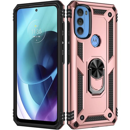 Mobigear Armor Ring Coque Motorola Moto G71 5G Coque arrière Rigide Anti-Chocs avec Anneau-Support - Rose doré