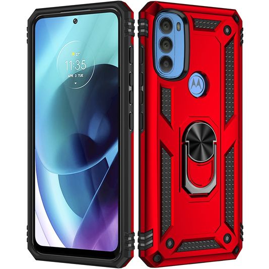 Mobigear Armor Ring Coque Motorola Moto G71 5G Coque arrière Rigide Anti-Chocs avec Anneau-Support - Rouge