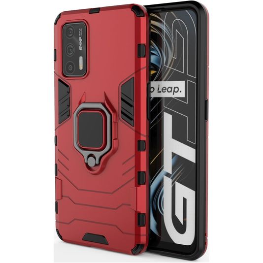 Mobigear Armor Ring Coque Realme GT Coque arrière Rigide Anti-Chocs avec Anneau-Support - Rouge