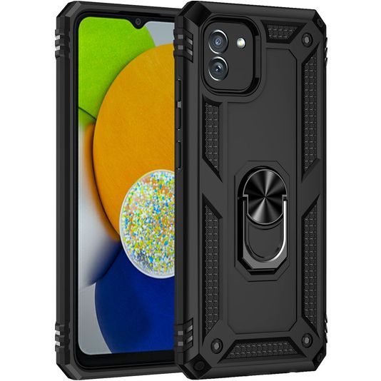 Mobigear Armor Ring Coque Samsung Galaxy A03 Coque arrière Rigide Anti-Chocs avec Anneau-Support - Noir