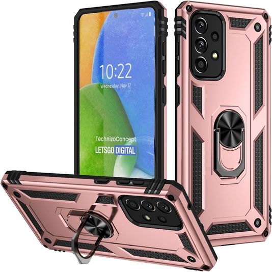Mobigear Armor Ring Coque Samsung Galaxy A73 Coque arrière Rigide Anti-Chocs avec Anneau-Support - Rose doré