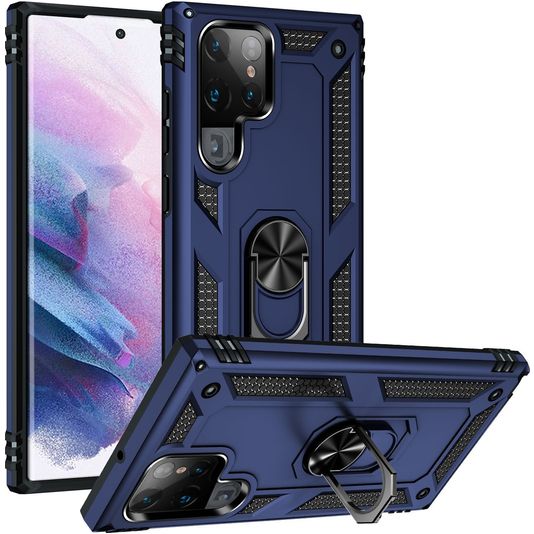 Mobigear Armor Ring Coque Samsung Galaxy S22 Ultra Coque arrière Rigide Anti-Chocs avec Anneau-Support - Bleu