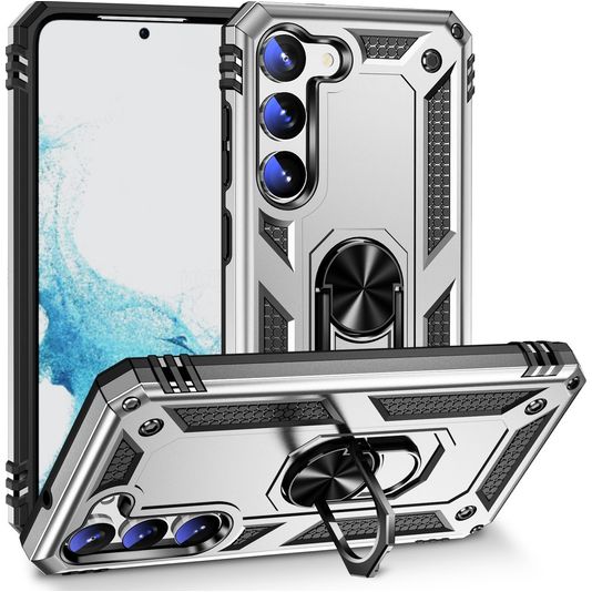 Mobigear Armor Ring Coque Samsung Galaxy S23 Coque arrière Rigide Anti-Chocs avec Anneau-Support - Argent