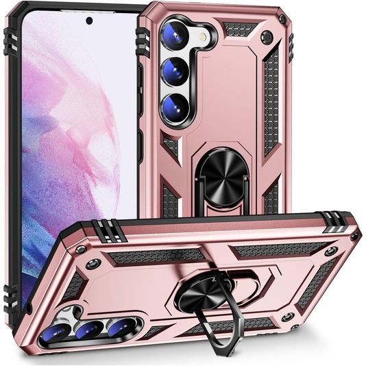 Mobigear Armor Ring Coque Samsung Galaxy S23 Plus Coque arrière Rigide Anti-Chocs avec Anneau-Support - Rose doré