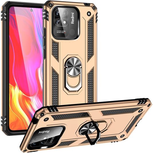 Mobigear Armor Ring Coque Xiaomi Redmi 10C Coque arrière Rigide Anti-Chocs avec Anneau-Support - Or